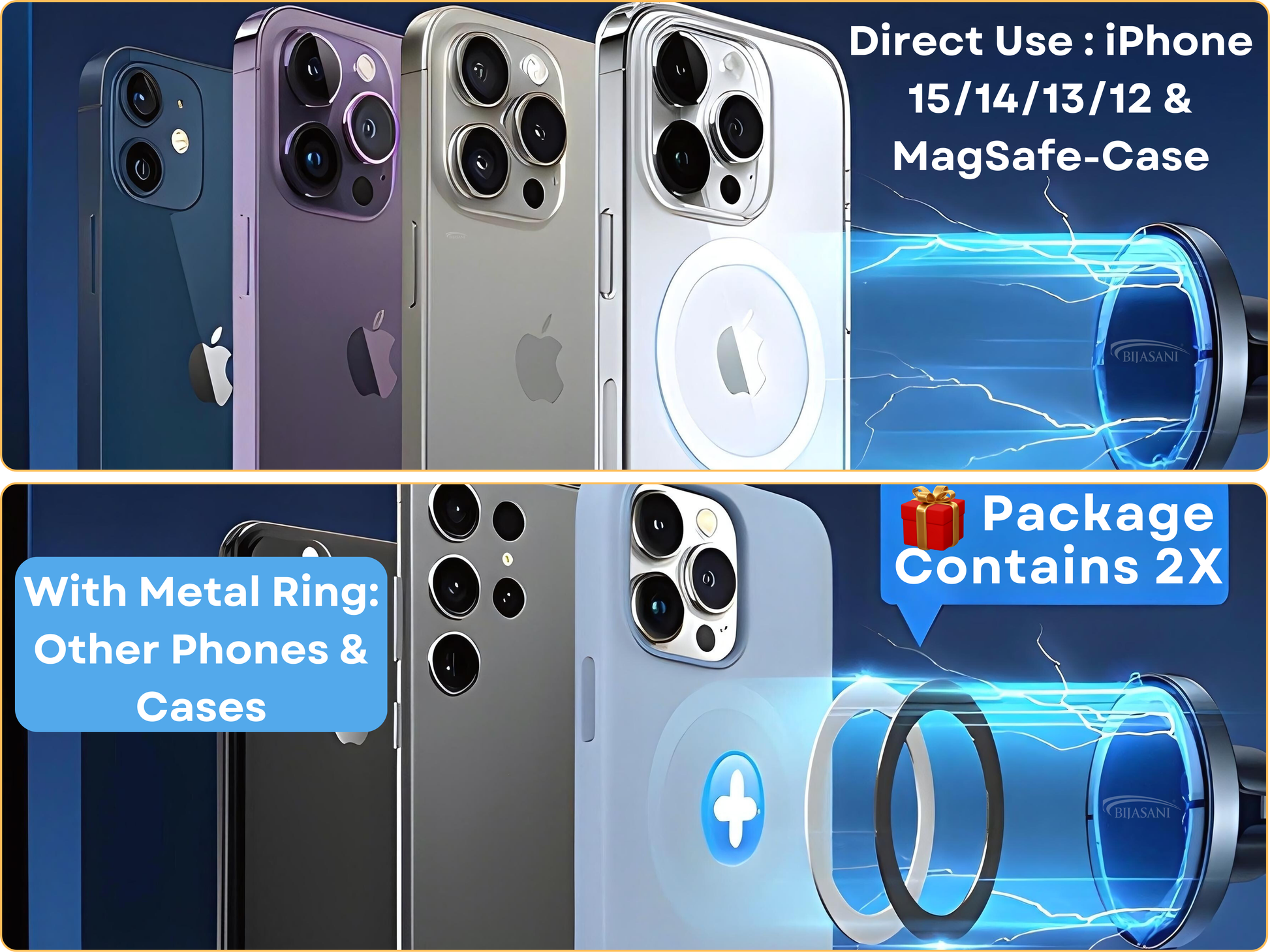 ✅【UPGRADED DUAL MAGNETIC DESIGN】Dual-side magnetic holder ensures strong, secure attachment for MagSafe iPhones and non-MagSafe phones using the included magnetic ring. ✅【MUST-HAVE FOR GYM CONTENT CREATION】Shoot multi-angle workout videos hands-free. Easily attach to gym machines or any metal surface—safe, stable, and perfect for content creators. ✅【UNIVERSAL FIT & VERSATILE USE】Compatible with almost all iPhone models, Android phones, and small tablets. Ideal for gym, home, office, car, and wall mounting. Slim and portable. ✅【PERFECT GIFT FOR SPORTS PERSON】Essential gym accessory for men, women, and teenagers. Use as gym phone holder, car mount, wall mount, or MagSafe holder. ✅【COMPACT & SLEEK DESIGN】Pocket-size, lightweight, and ultra-slim magnetic phone holder—easy to carry anywhere. ✅【MAGSAFE COMPATIBLE】For iPhone 12 series and above, no magnetic ring required. Directly attach your iPhone to the dual magnetic holder. ✅【MOUNT ANYWHERE】Works on any iron or metal surface. For non-magnetic areas, simply paste the metal plate and mount your phone worry-free.
