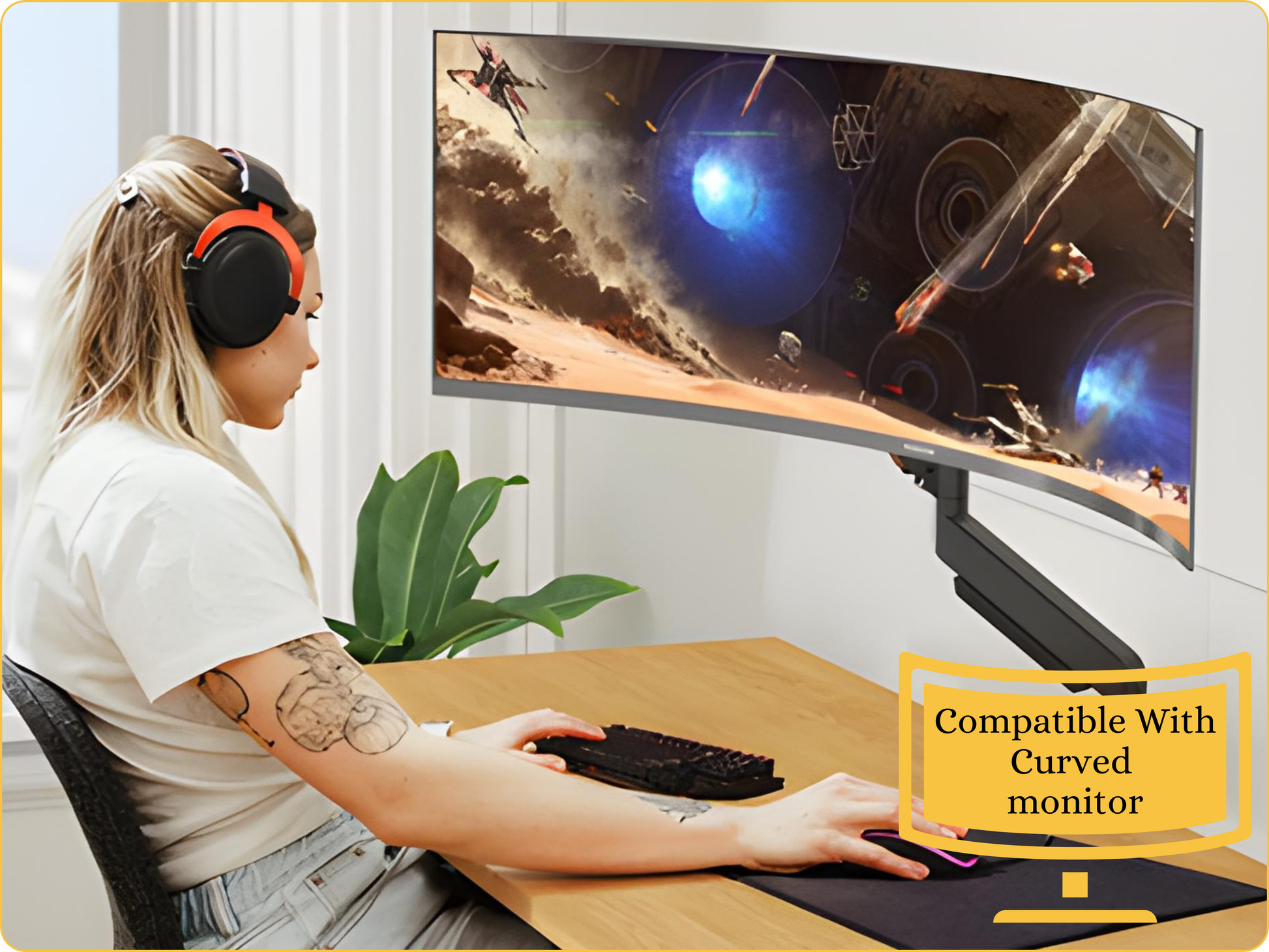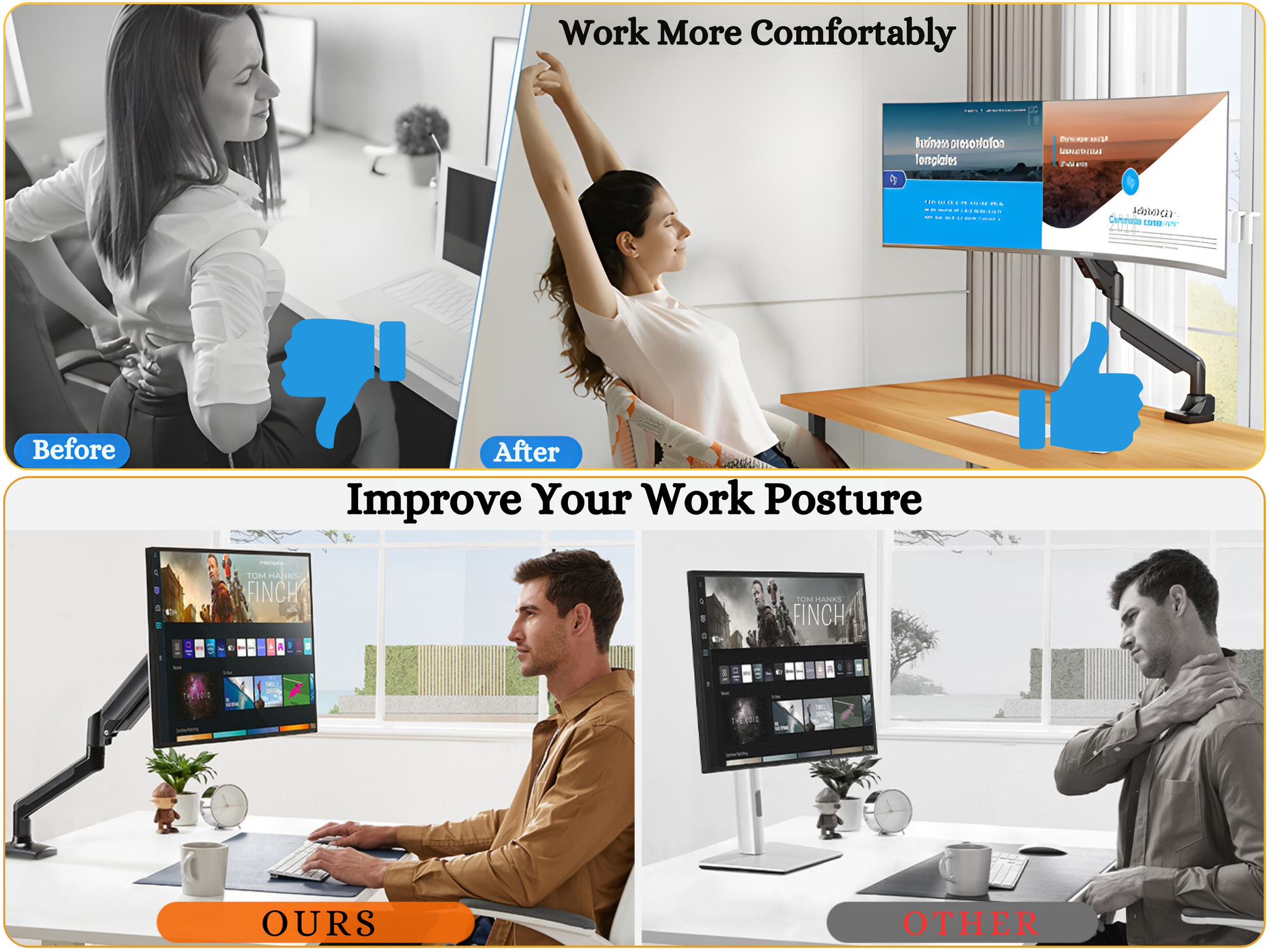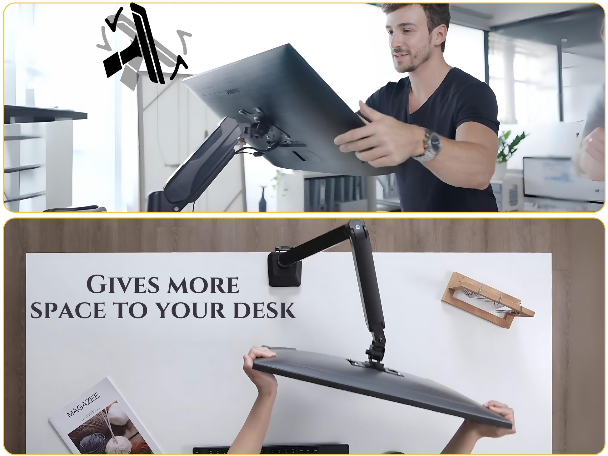 ✅ ERGONOMIC DESIGN Converts your desk into an ergonomic workstation. Ideal for work-from-home professionals, gaming setups, and trading desks. VESA mount compatible.