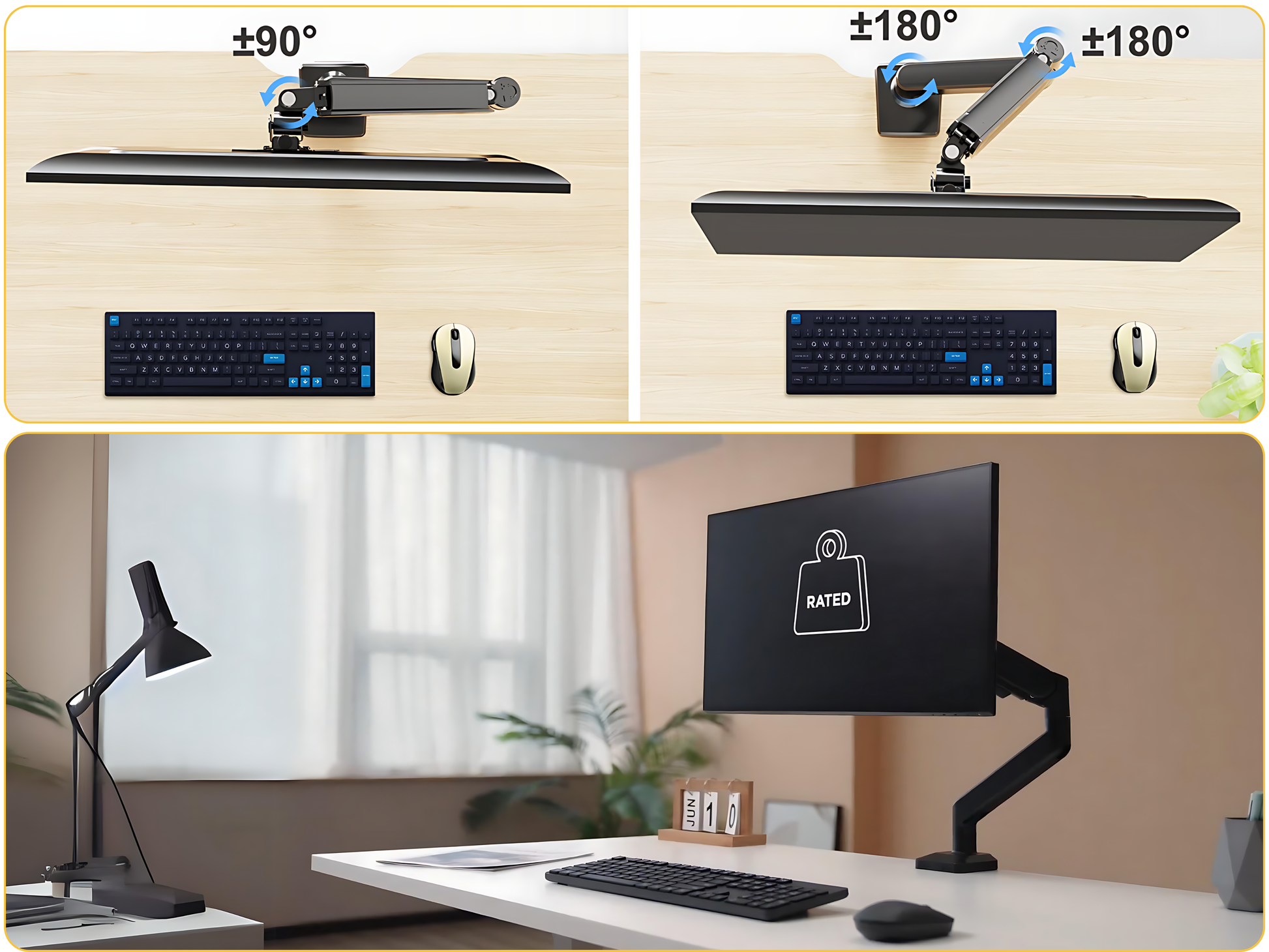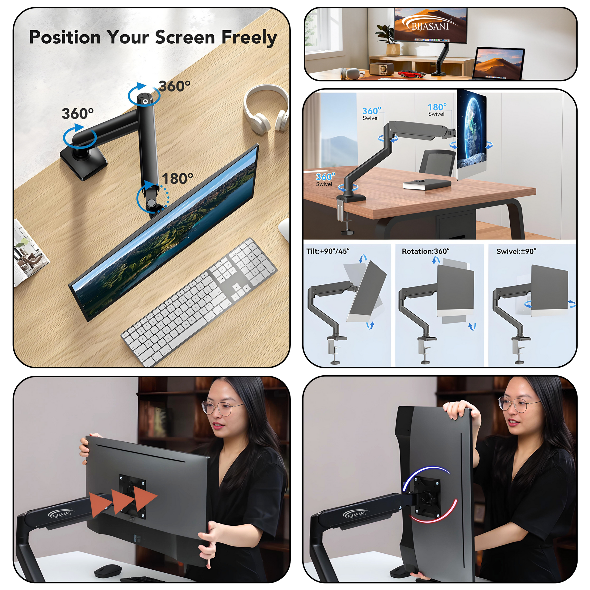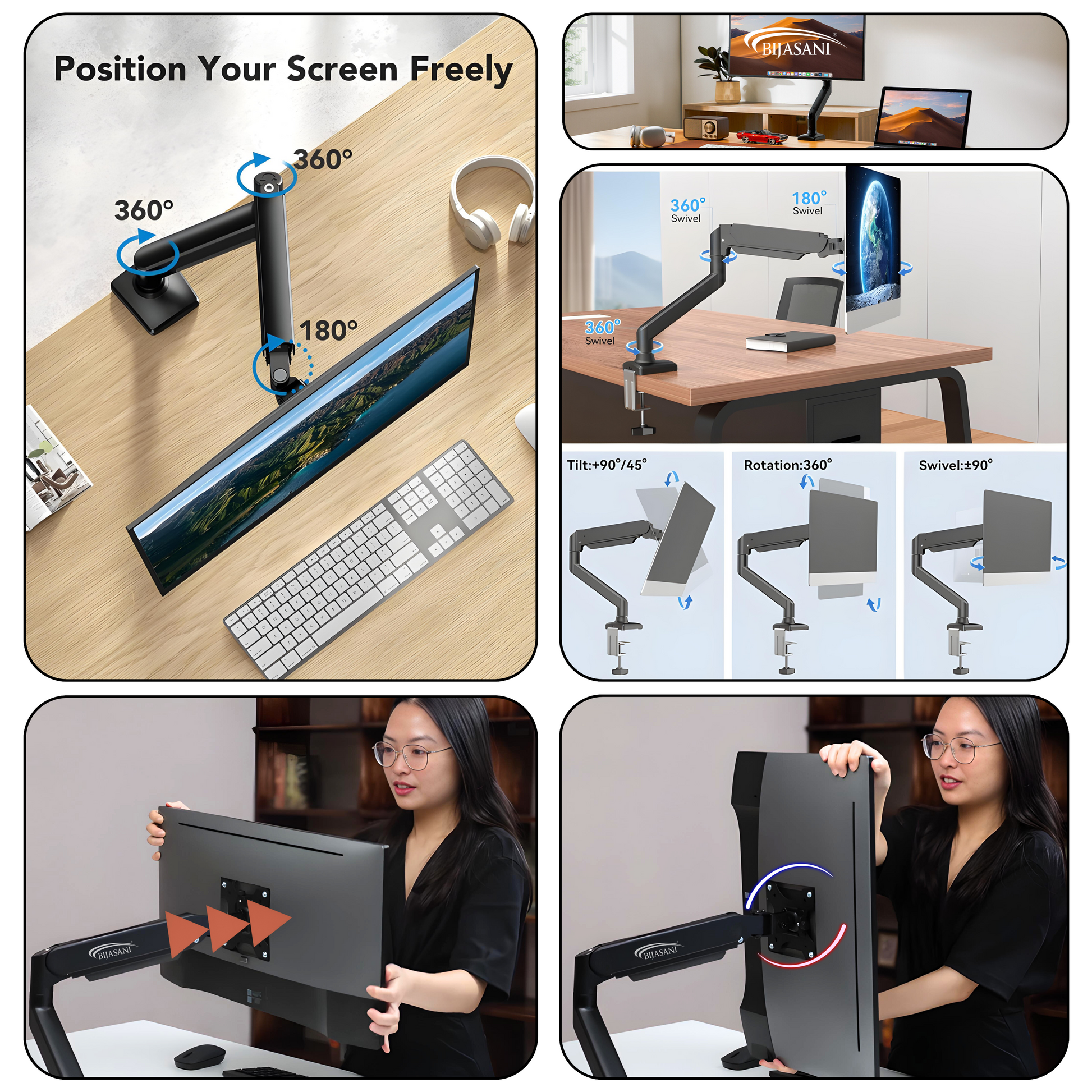 ✅ FLEXIBLE MOVEMENT Tilt, rotate, swivel, and extend your monitor within safe limits for optimal viewing comfort.