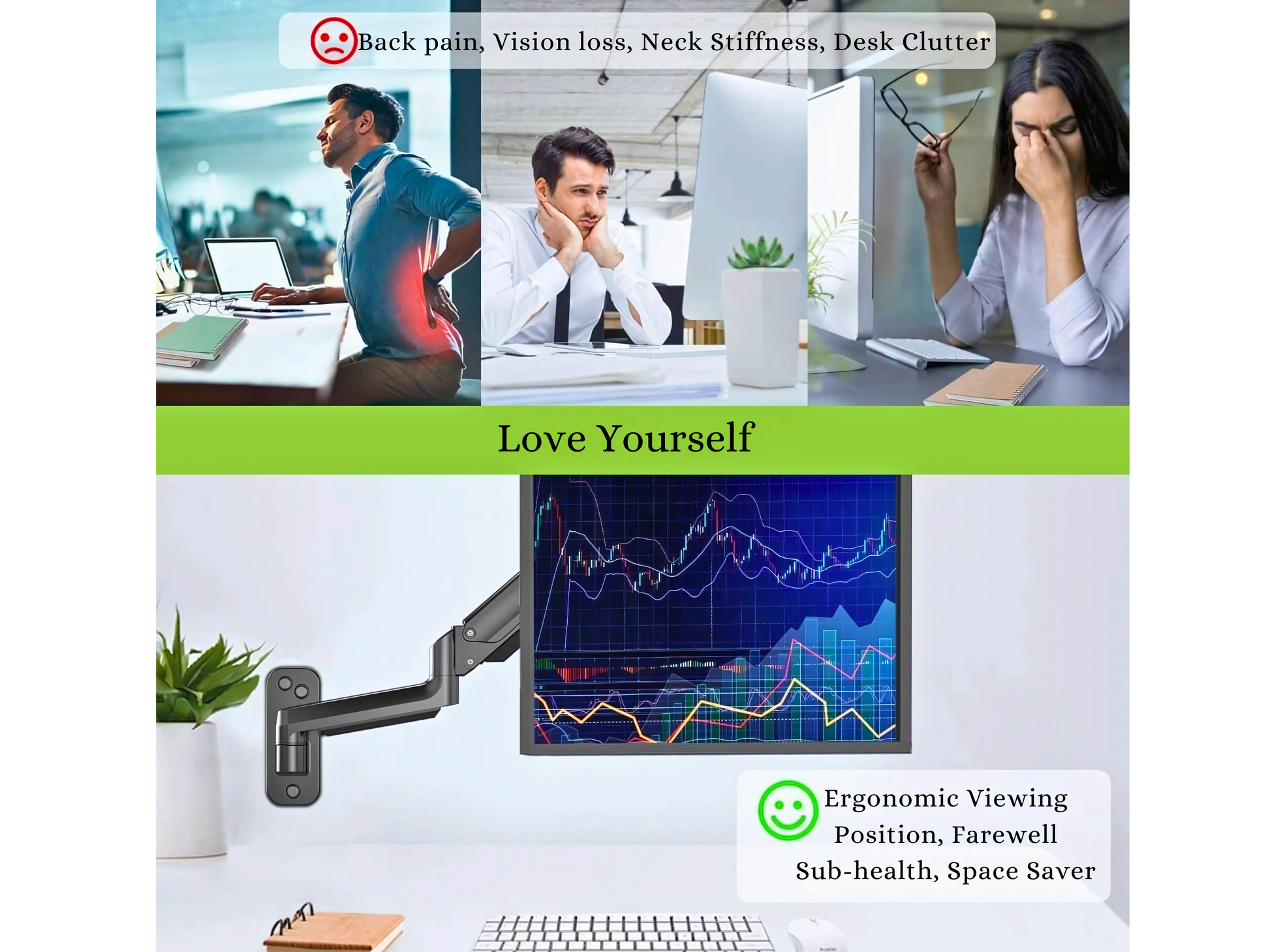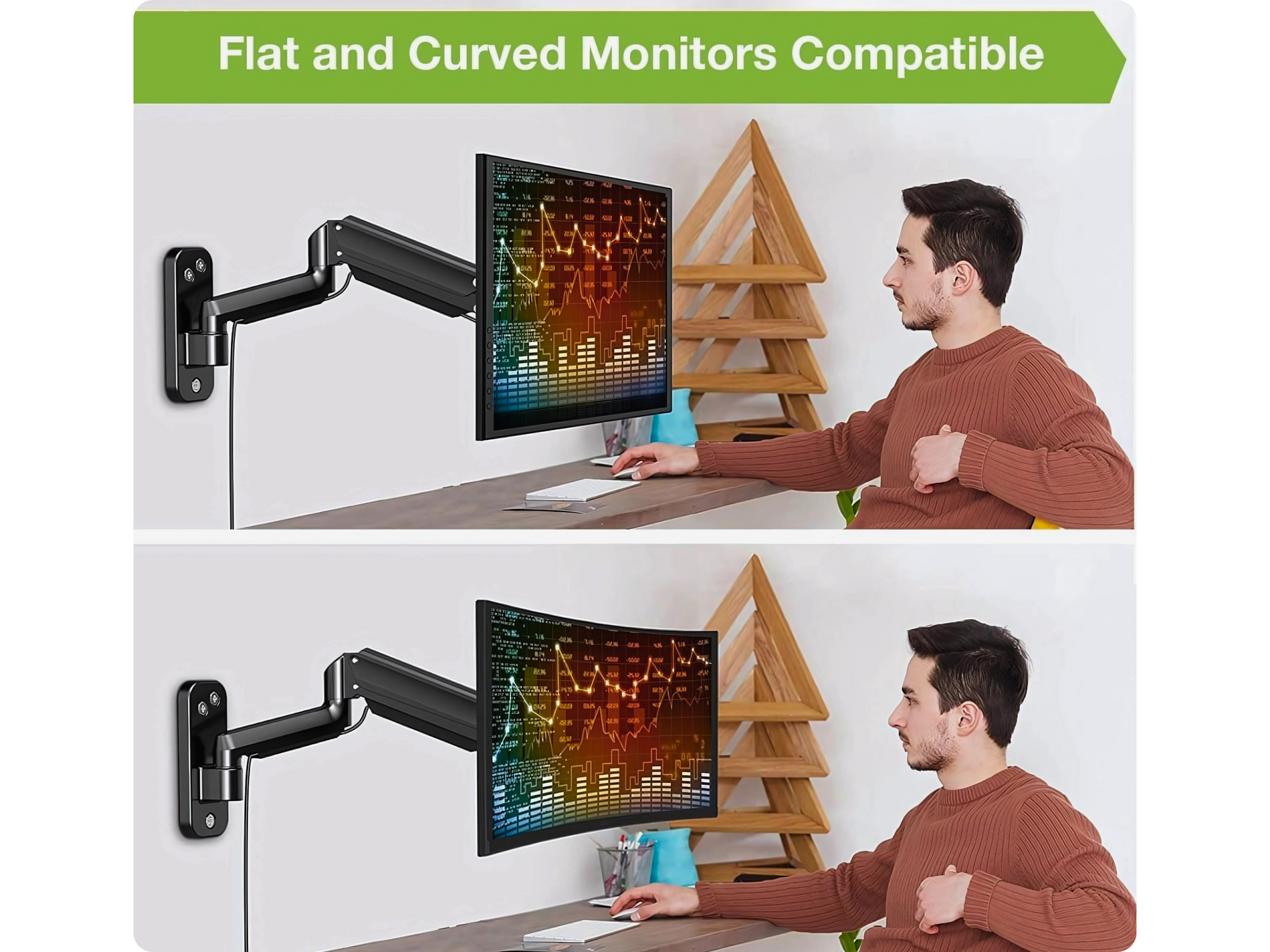 ✅ ERGONOMIC WALL MOUNT DESIGN Converts your desk into an ergonomic workstation. Ideal for work-from-home, gaming, and trading setups. VESA compatible.